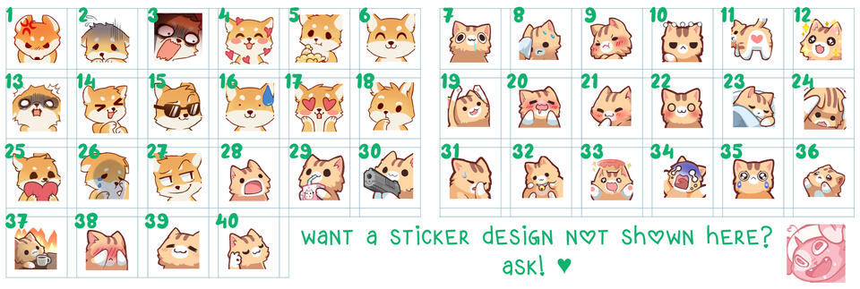 ➤ Custom emotes (not listed below) are $25 per+$5/sticker for complex characters