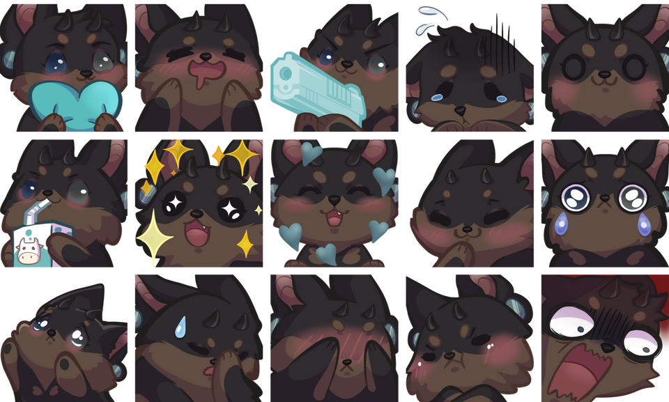 ➤ Custom emotes (not listed below) are $25 per+$5/sticker for complex characters